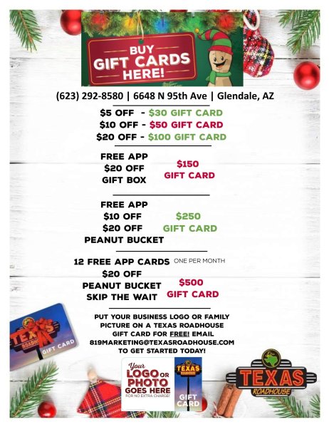 Valid only at Texas Roadhouse Glendale (6648 N 95th Ave, Glendale, AZ 85305)