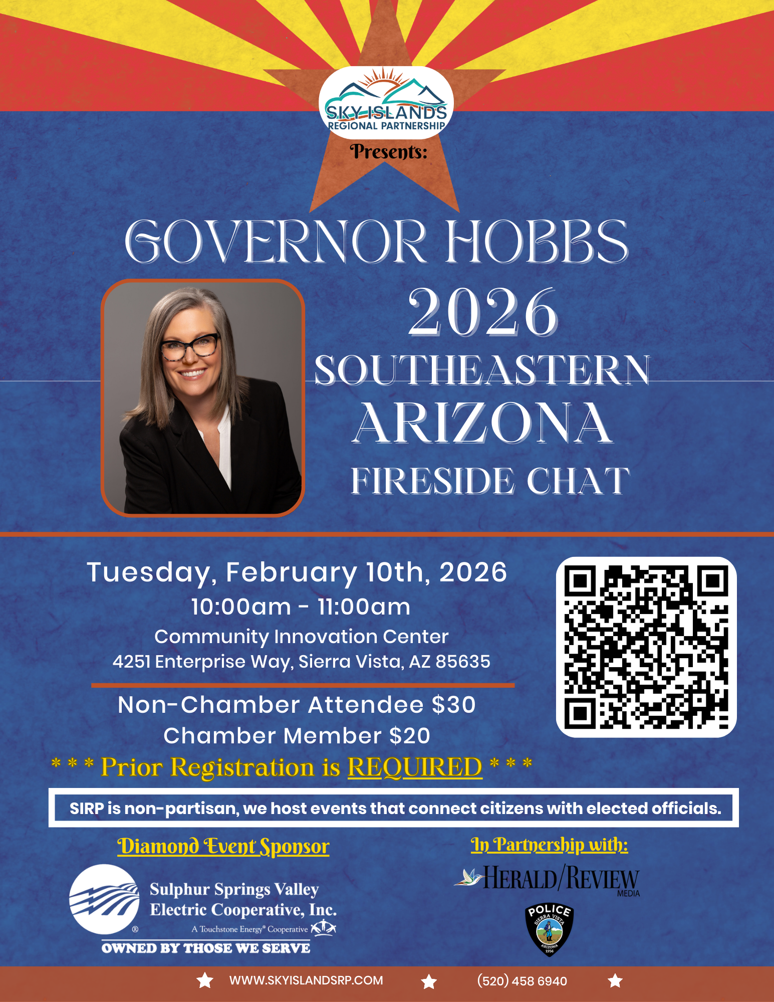 *The Sky Islands Regional Partnership is a non-partisan organization. We provide events such as "Governor Hobbs' 2026 Southeastern Arizona Fireside Chat" to allow citizens the opportunity to hear from elected officials.