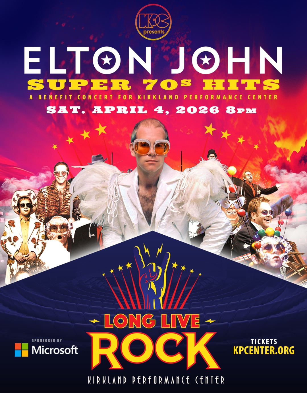 Don’t miss your chance to get groovy with KPC for our signature spring fundraising concert, Elton John’s Super 70’s Hits – A Benefit Concert for KPC, performed by Long Live Rock! Presented by Microsoft. Come prepared to sing your heart out to favorite Super 70’s Hits like “Bennie and the Jets”, “Crocodile Rock”, “Tiny Dancer”, “Goodbye Yellow Brick Road”, and “Rocket Man”. This one-night-only benefit supports KPC’s operations, artistic, and educational programming.