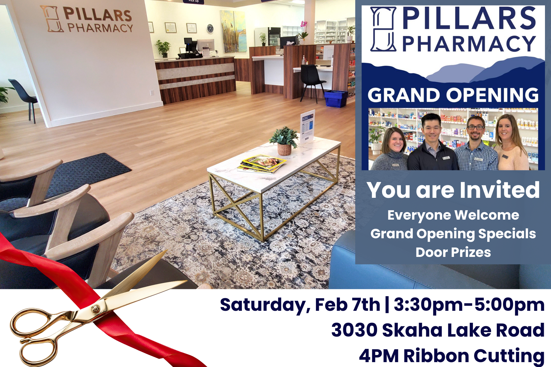 Come celebrate the official Grand Opening of Pillars Pharmacy. Attendees can get 10% off most front store purchases during the event. Enjoy free refreshments and enter to win one of the fantastic door prizes!