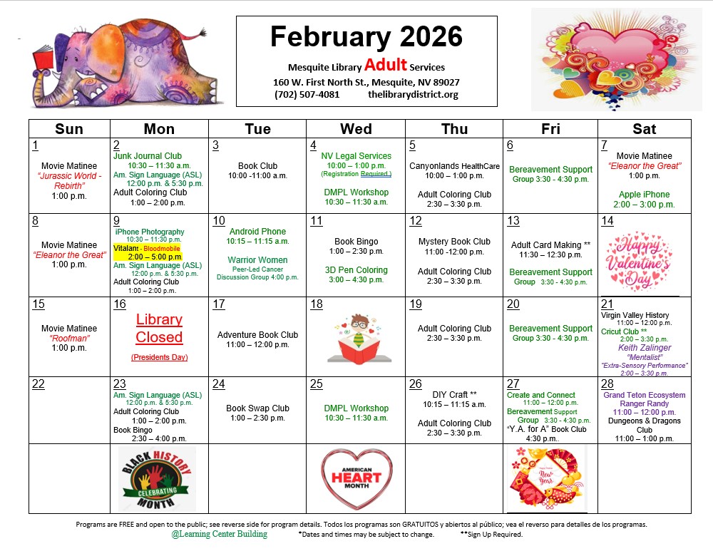 Mesquite Library February 2026 Adult Program Calendar