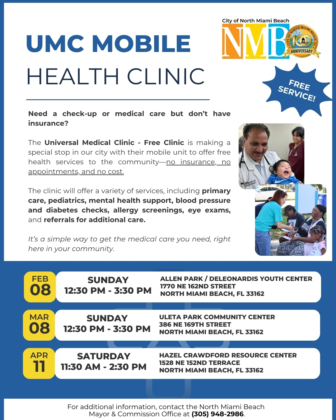 The UMC Mobile Health Clinic is making a special stop in North Miami Beach to provide free health services — no insurance, no appointment, no cost!