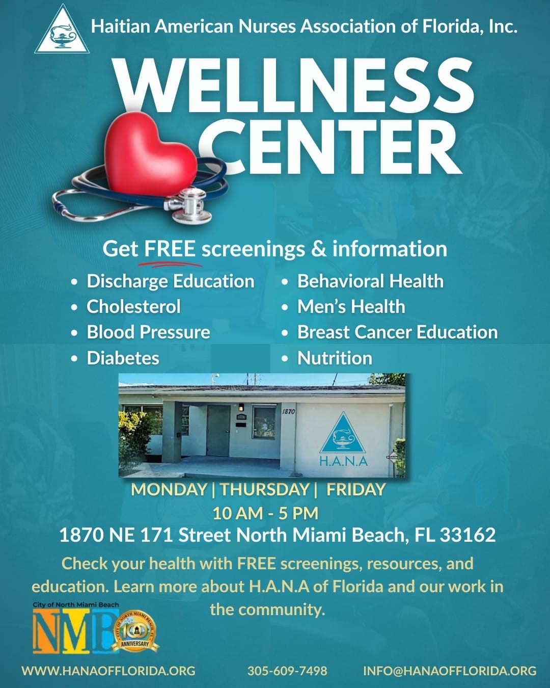 NMB Residents are also encouraged to take advantage of ongoing free wellness services offered by the Haitian American Nurses Association of Florida (H.A.N.A.).