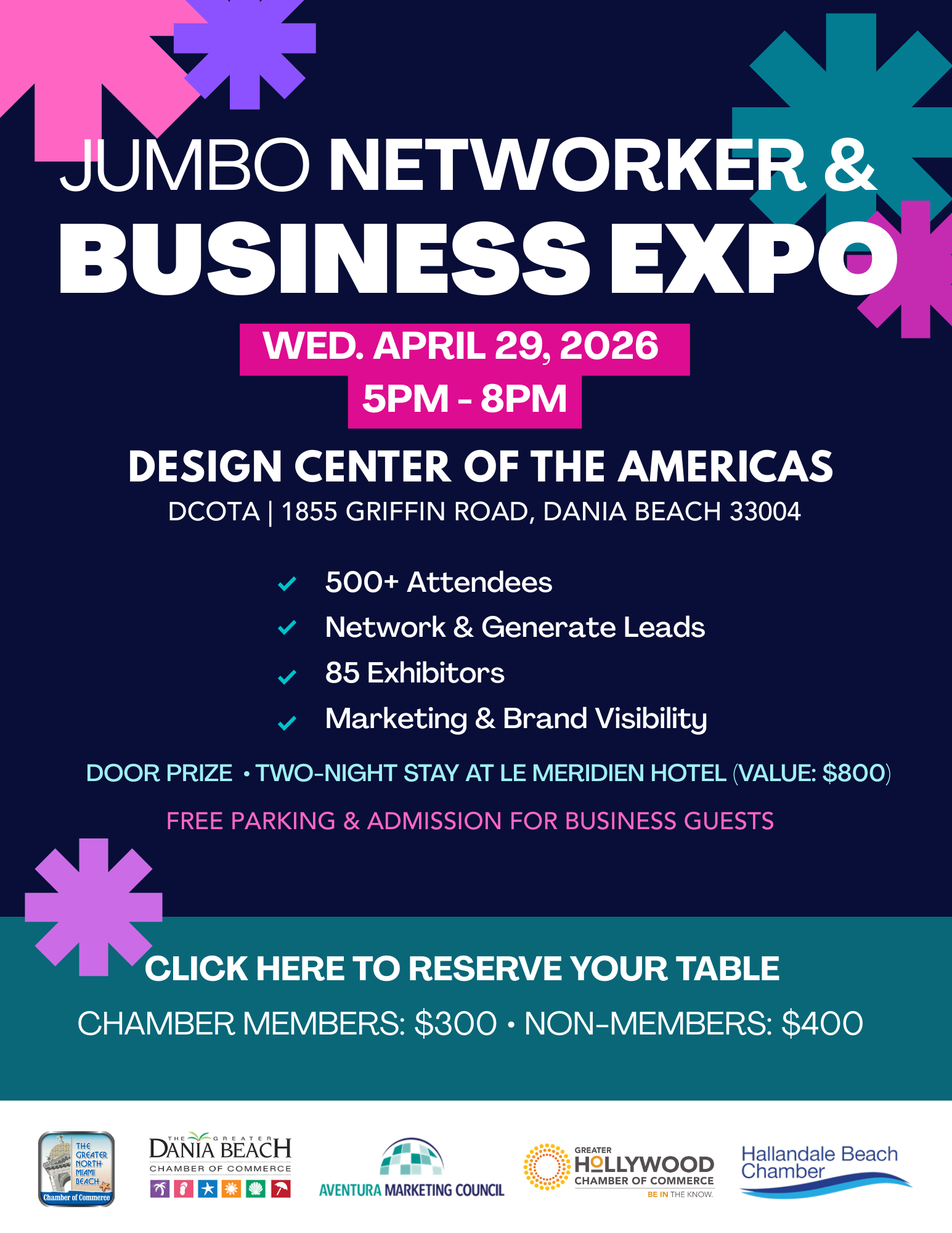 The North Miami Beach Chamber is pleased to invite you to participate in one of South Florida’s most anticipated business networking events—the 2026 Jumbo Multi-Chamber Business Expo at DCOTA.