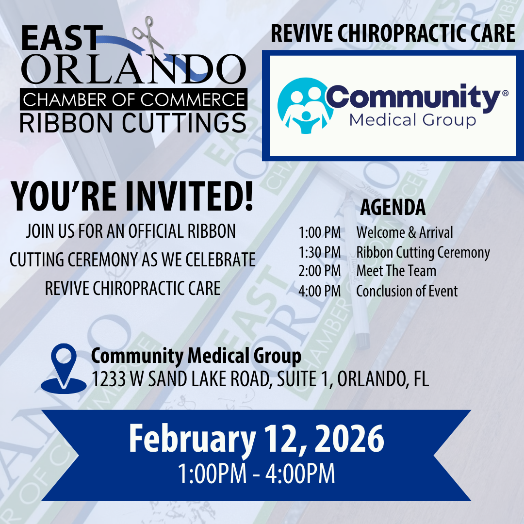 Join the East Orlando Chamber of Commerce as we celebrate the official ribbon cutting of Community Medical Group!