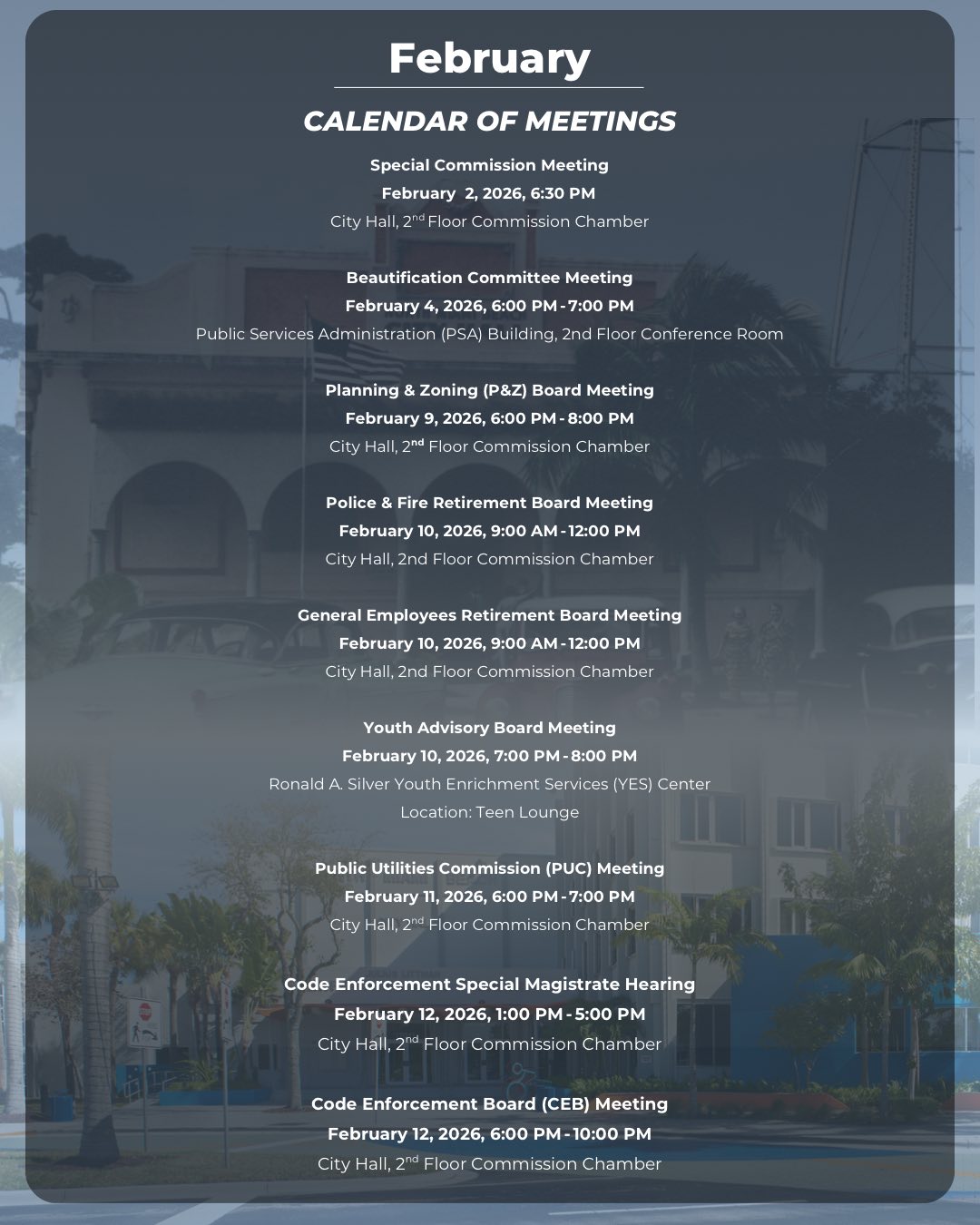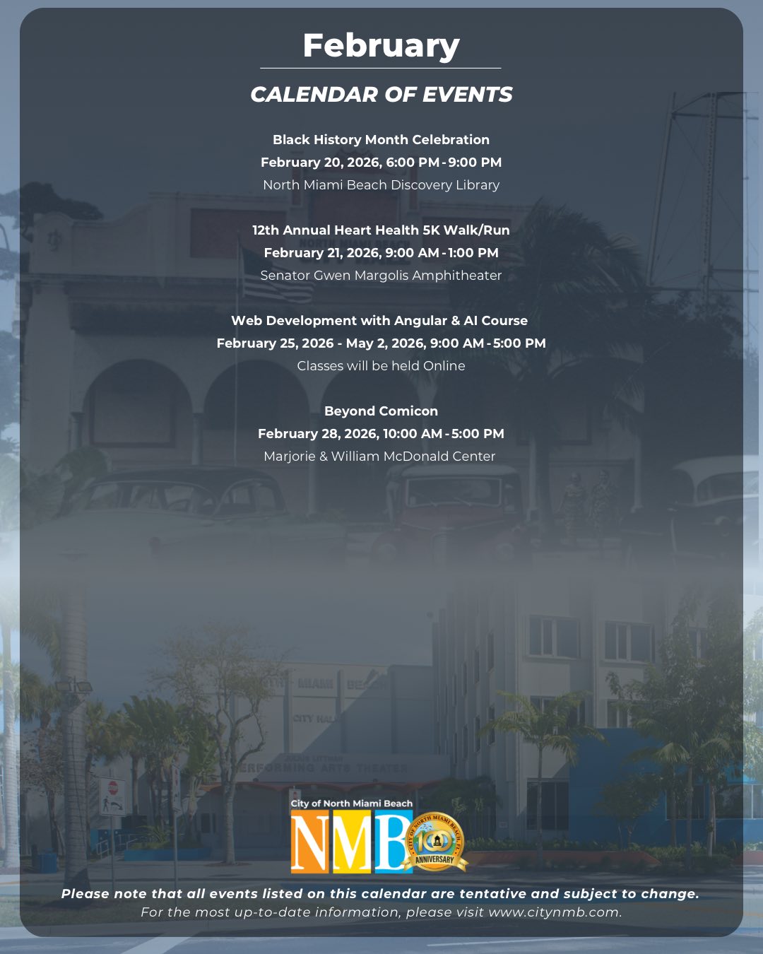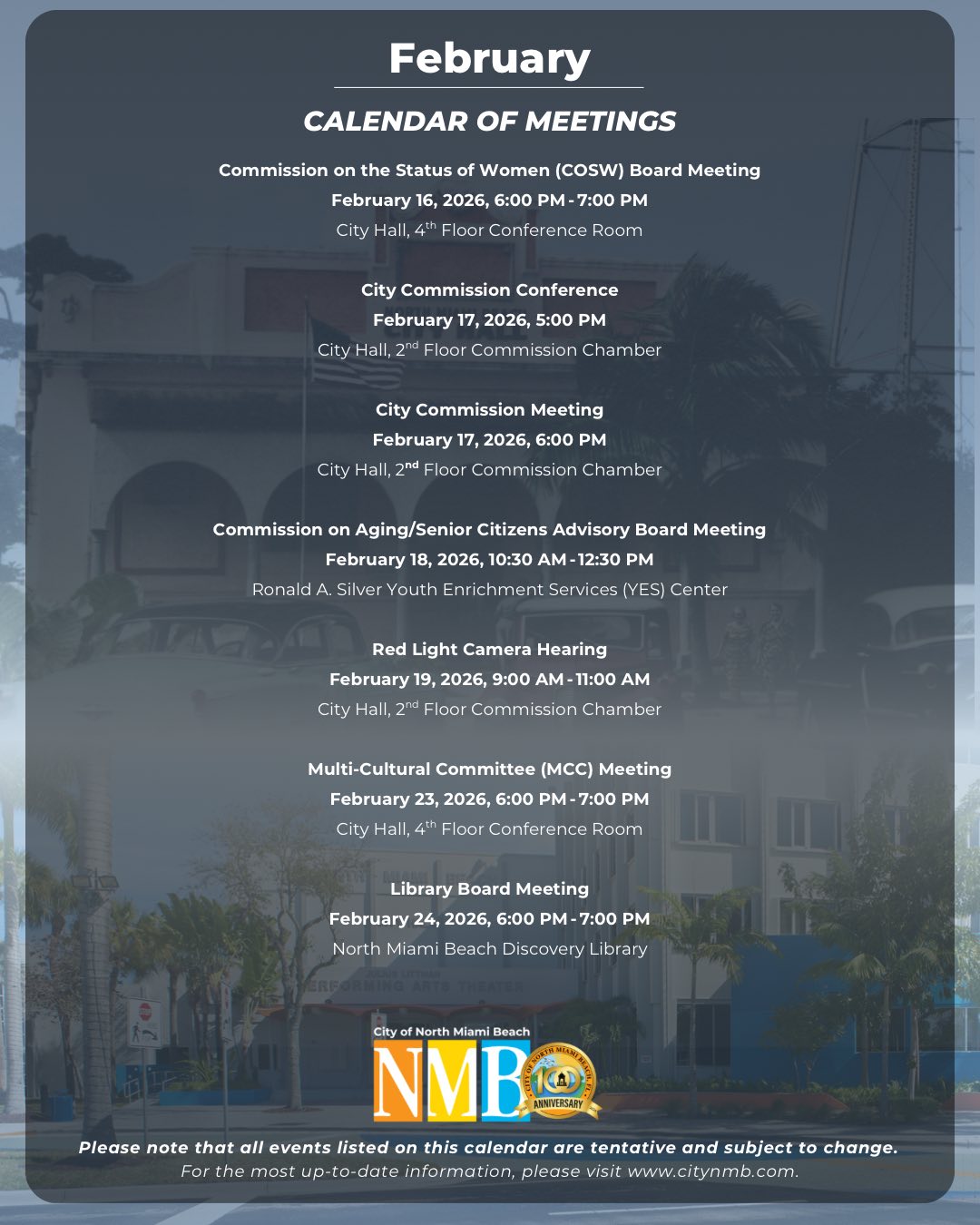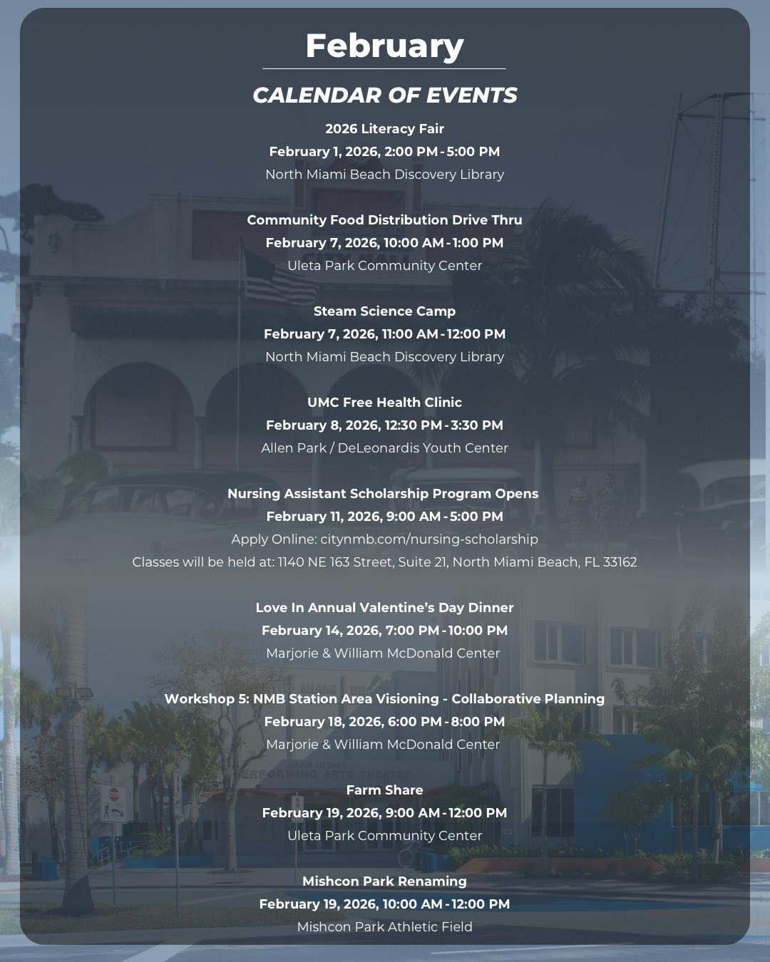 City of North Miami Beach February 2026 Events and Meetings Calendar