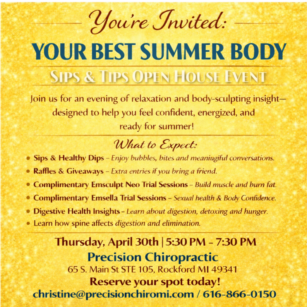 Join us for an evening of relaxation, wellness tips, and body-sculpting insight—designed to help you feel confident, energized, and ready for summer!