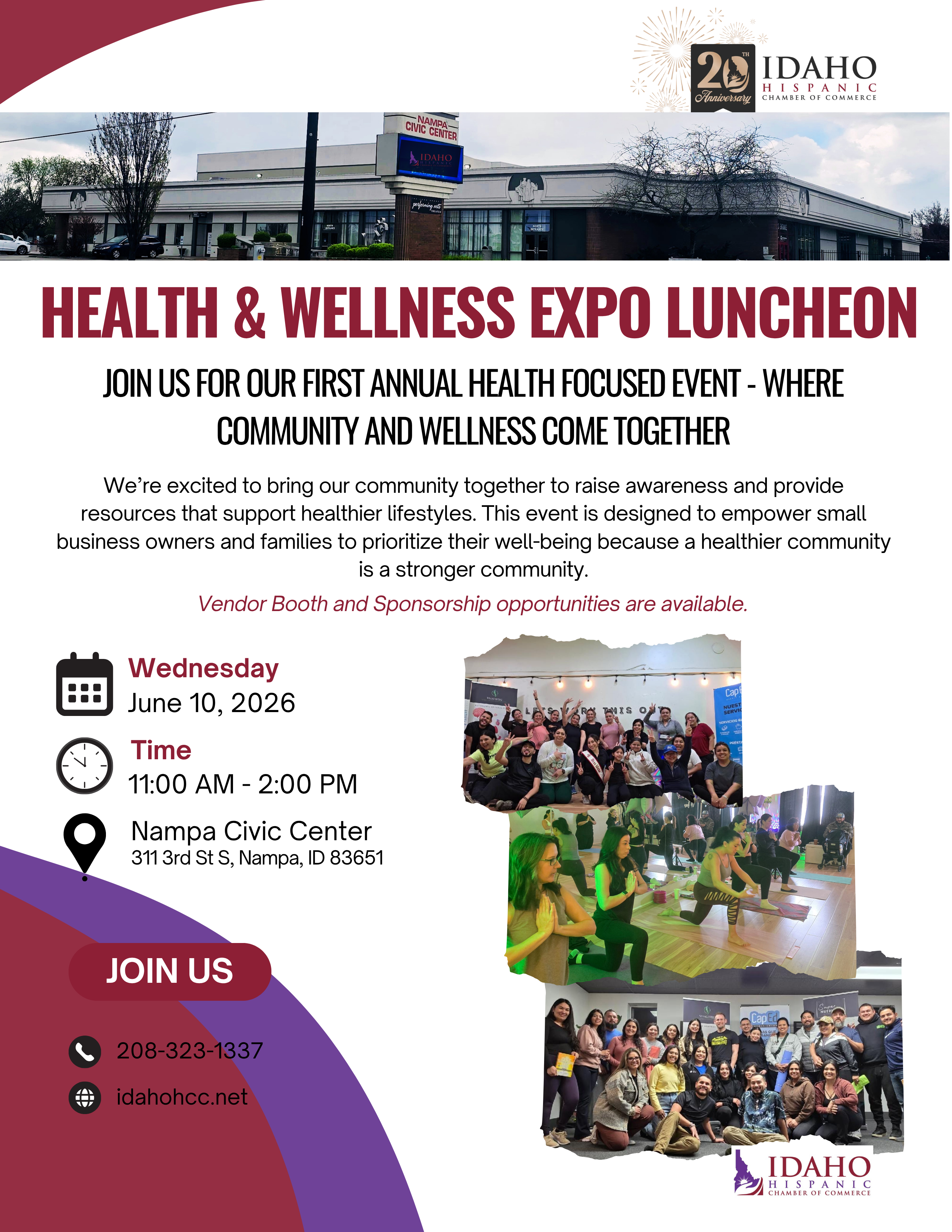 We are excited to announce the addition of a new event to our 2026 strategic events & initiatives — one that is both timely and essential: the Health & Wellness Expo Luncheon, taking place on June 10, 2026 at the Nampa Civic Center.